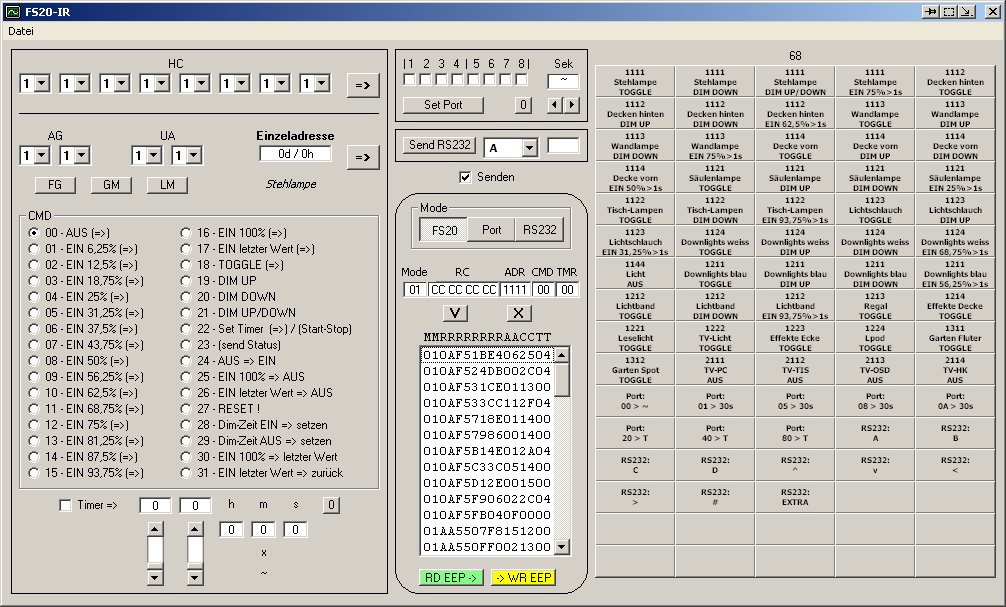 - FS20-Befehle können auch direkt am PC gesendet werden
