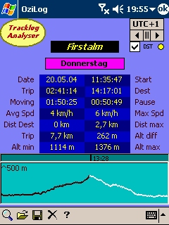 Auswertung von mit OziExplorerCE erzeugten Tracklogs.